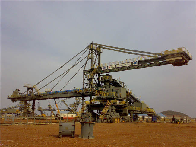 斗轮堆取料机(堆料机和取料机)是一种新型高效率连续装卸机械,主要用于散货码头、钢铁厂、大型火力发电厂和矿山等的散料堆场装卸铁矿石(砂)、煤炭、砂子等。该机因其作业效率高,故在国内外得到广泛应用。我国大陆的上海、宁波、广州、秦皇岛、青岛、日照、南京等港口均已拥有这种机械。